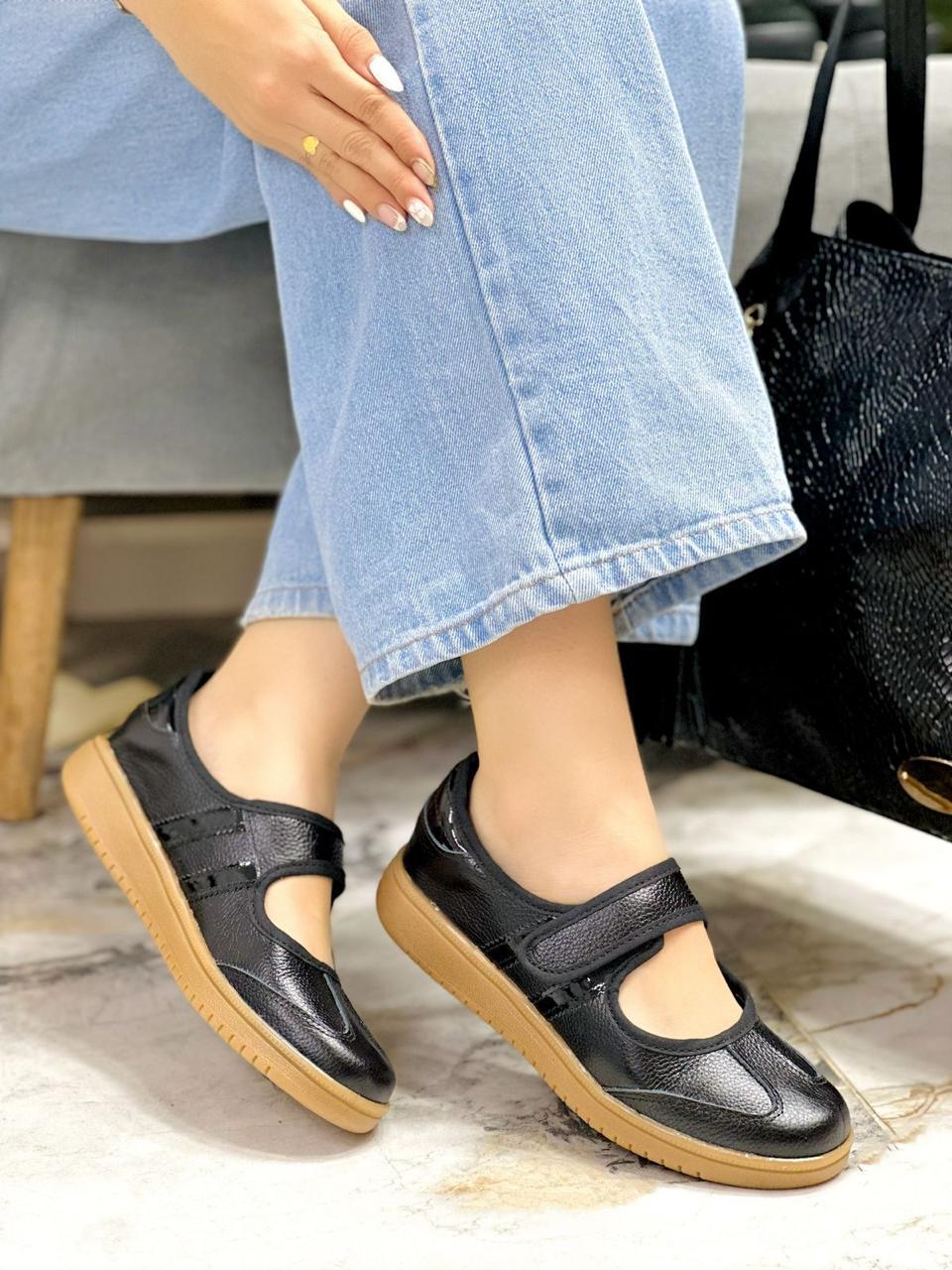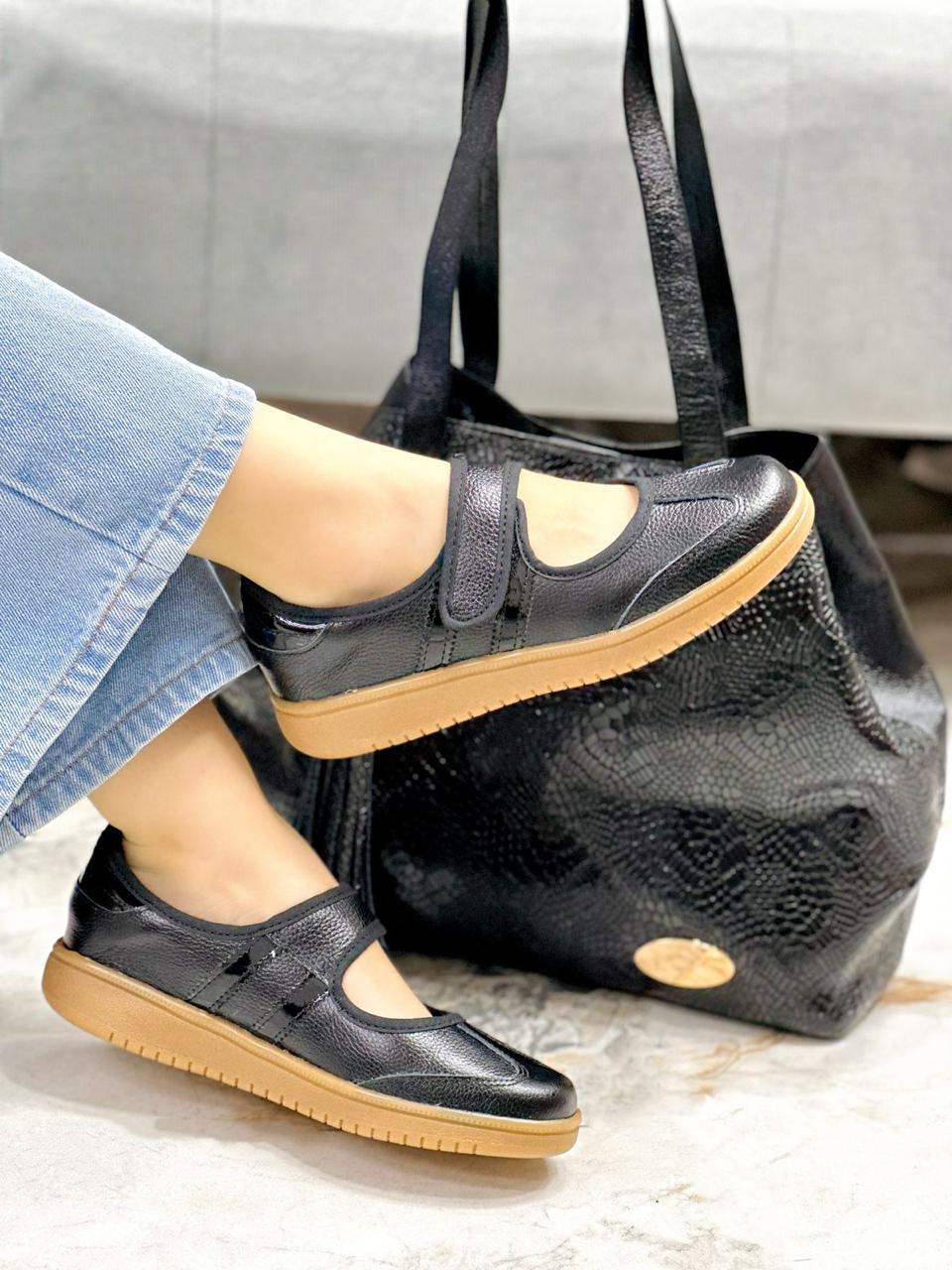 Zapatos de cuero negro con diseño clásico tipo Mary Jane, ideales para el uso diario. Están confeccionados en cuero de alta calidad, suave y resistente, que brinda comodidad y durabilidad. Cuentan con una correa con cierre ajustable que asegura un buen calce y mayor estabilidad al caminar. La suela color caramelo es flexible y antideslizante, perfecta para acompañarte durante todo el día. Su diseño versátil los hace ideales tanto para looks casuales como más formales.