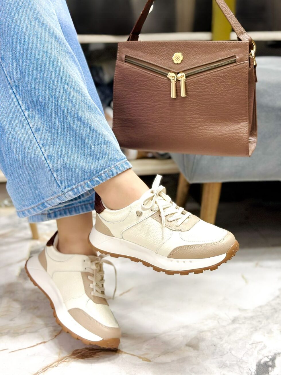 stos tenis en cuero color talco destacan por su diseño versátil y elegante, combinando piezas en tono arena y café que aportan un equilibrio perfecto entre estilo y sofisticación. Su confección en cuero de alta calidad ofrece durabilidad y una textura suave al tacto, mientras que su suela liviana garantiza comodidad en cada paso. Ideales para acompañarte en cualquier ocasión, estos tenis fusionan moda y confort, convirtiéndose en una opción infaltable para quienes buscan un calzado práctico, moderno y con un toque de distinción.