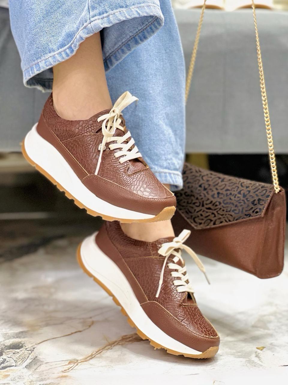Estos tenis en cuero Talipe destacan por su diseño totalmente en Avellana , una elección atemporal que los hace perfectos para cualquier ocasión. Su textura elegante aporta un toque moderno y sofisticado, mientras que la suela brinda comodidad y estabilidad en cada paso. Son ideales para quienes buscan un calzado versátil, fácil de combinar y pensado para acompañar el ritmo del día a día sin perder estilo.