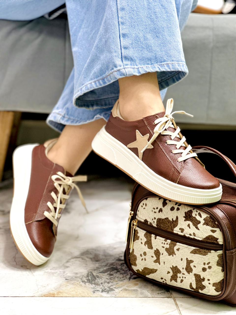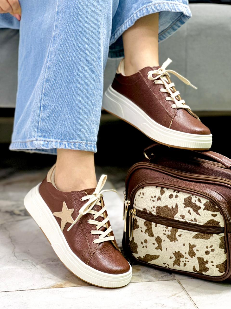 Estos tenis en cuero color Avellana son el equilibrio perfecto entre estilo y comodidad. Su diseño se realza con elegantes detalles en color taupe, que aportan un toque moderno y sofisticado, ideal para elevar cualquier outfit casual. Cuentan con una suela talco que brinda una pisada estable y cómoda, perfecta para el uso diario. Son versátiles, fáciles de combinar y pensados para quienes buscan un calzado práctico sin perder el estilo.