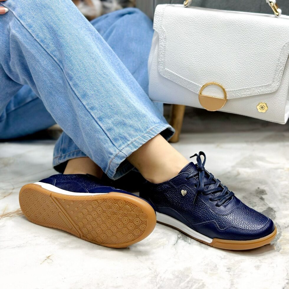 Estos tenis en cuero color Azul combinan elegancia, comodidad y estilo en un solo diseño. Su suela bajita en tono talco con detalle caramelo aporta un toque moderno y versátil, perfecto para usar todos los días. Fabricados 100% en cuero, cuentan con un forro interno en badana que brinda suavidad, frescura y confort en cada paso. Su tono en tendencia los convierte en un básico imprescindible que combina fácilmente con cualquier outfit, desde jeans hasta looks más casuales. Ideales para mujeres que buscan calidad, estilo y comodidad en un solo calzado