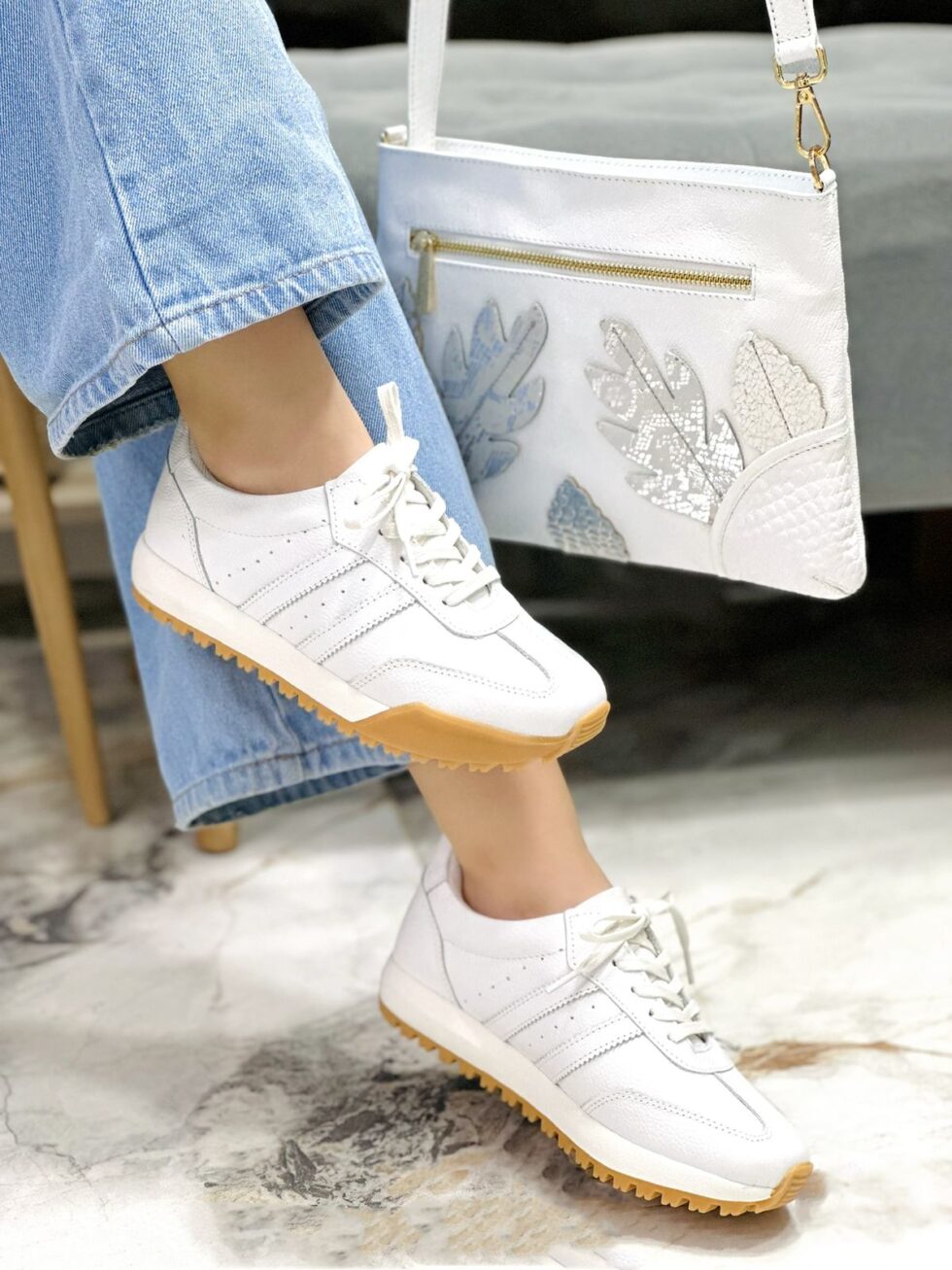 Tenis en cuero de alta calidad en su color Blanco con franjas en el mismo tono, creando un diseño moderno y versátil. Su estilo deportivo se realza con detalles en cuero liso y texturizado, además de una suela dentada que ofrece excelente tracción y confort en cada paso. Con cordones para un ajuste perfecto y plantilla acolchada, son ideales para looks casuales que buscan comodidad y estilo durante todo el día.