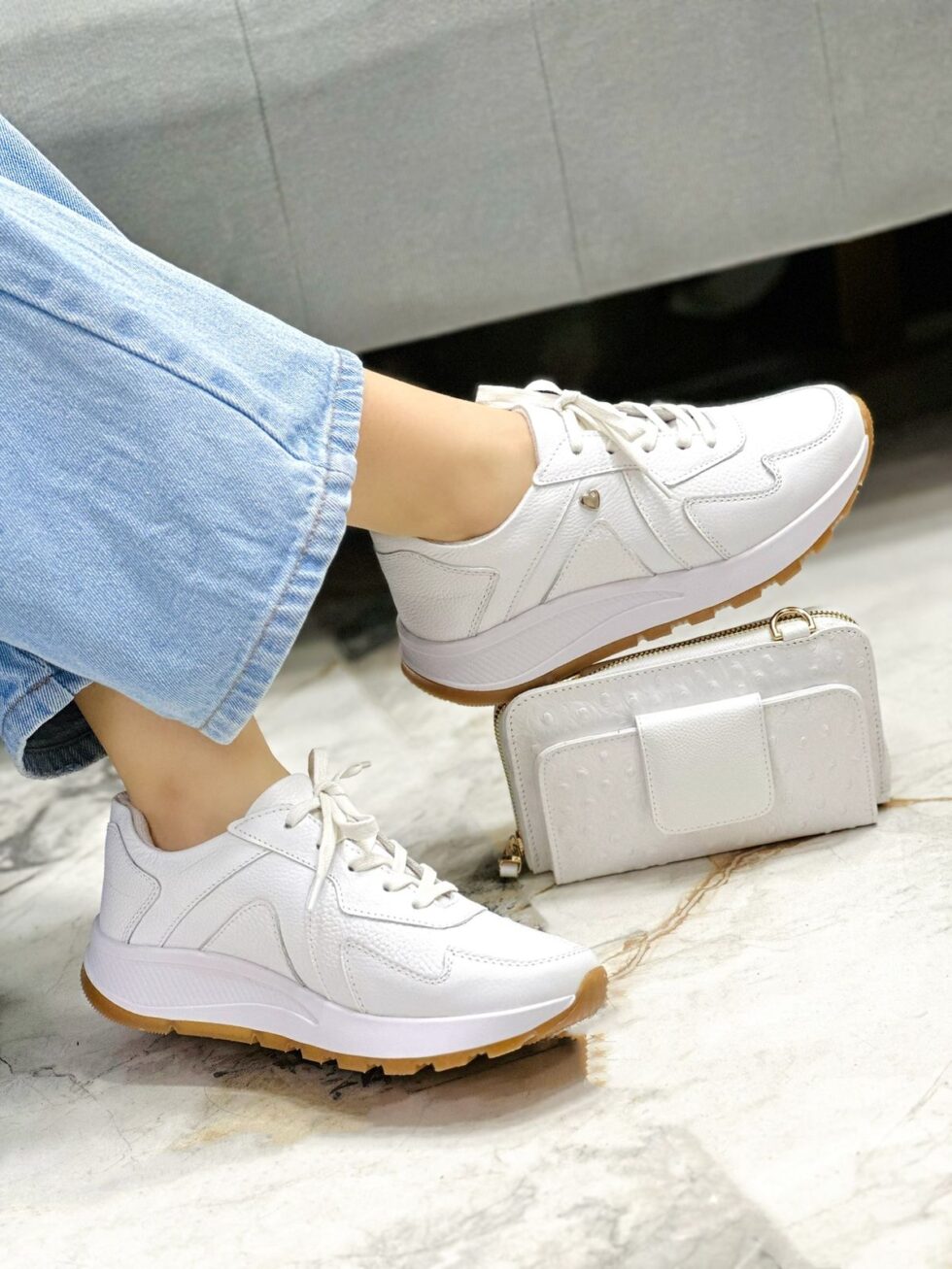 Estos tenis en color totalmente Blanco combinan estilo y funcionalidad en un diseño moderno y elegante. Están fabricados en cuero de alta calidad, lo que aporta resistencia, confort y una apariencia sofisticada. Su suela Sharith,  ofrece un equilibrio perfecto entre ligereza, estabilidad y tracción, ideal para caminar durante todo el día. Con un acabado texturizado y un diseño contemporáneo, estos tenis son la opción perfecta para quienes buscan comodidad sin renunciar al estilo.