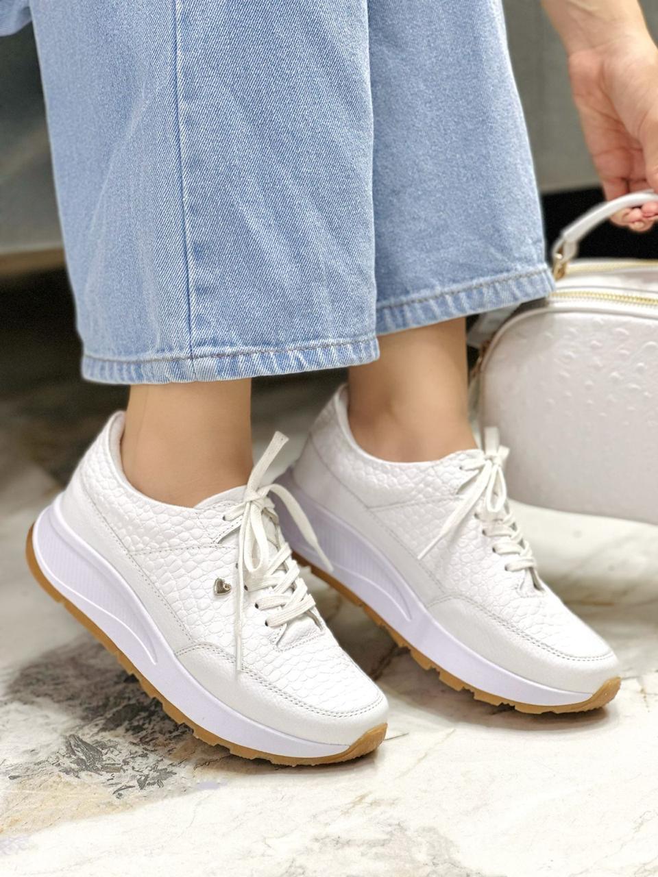 Estos tenis en cuero Talipe destacan por su diseño totalmente en Blanco , una elección atemporal que los hace perfectos para cualquier ocasión. Su textura elegante aporta un toque moderno y sofisticado, mientras que la suela brinda comodidad y estabilidad en cada paso. Son ideales para quienes buscan un calzado versátil, fácil de combinar y pensado para acompañar el ritmo del día a día sin perder estilo.