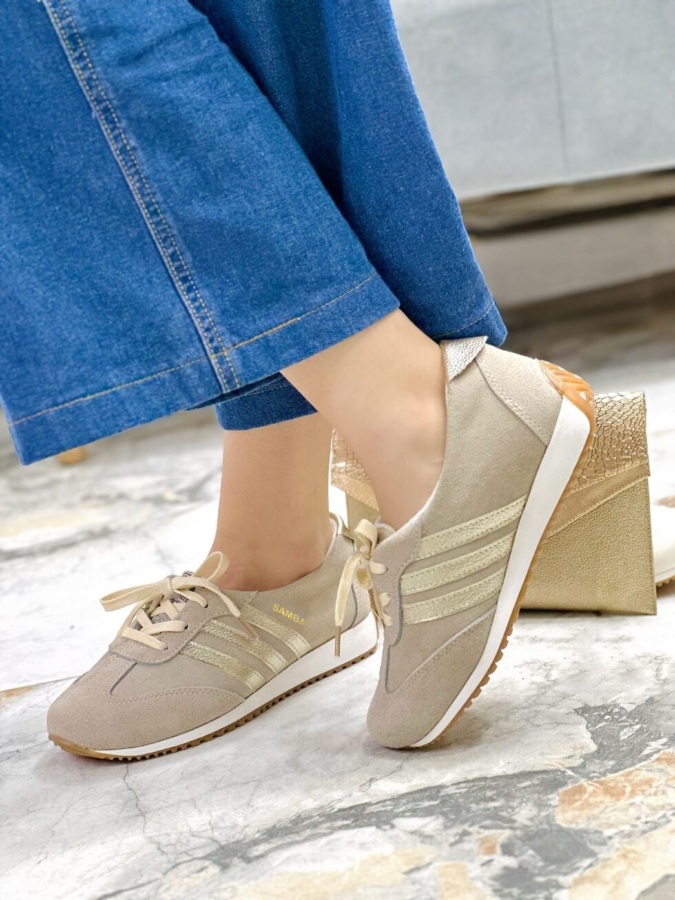 Tenis Carnaza Beige x Dorado (728)