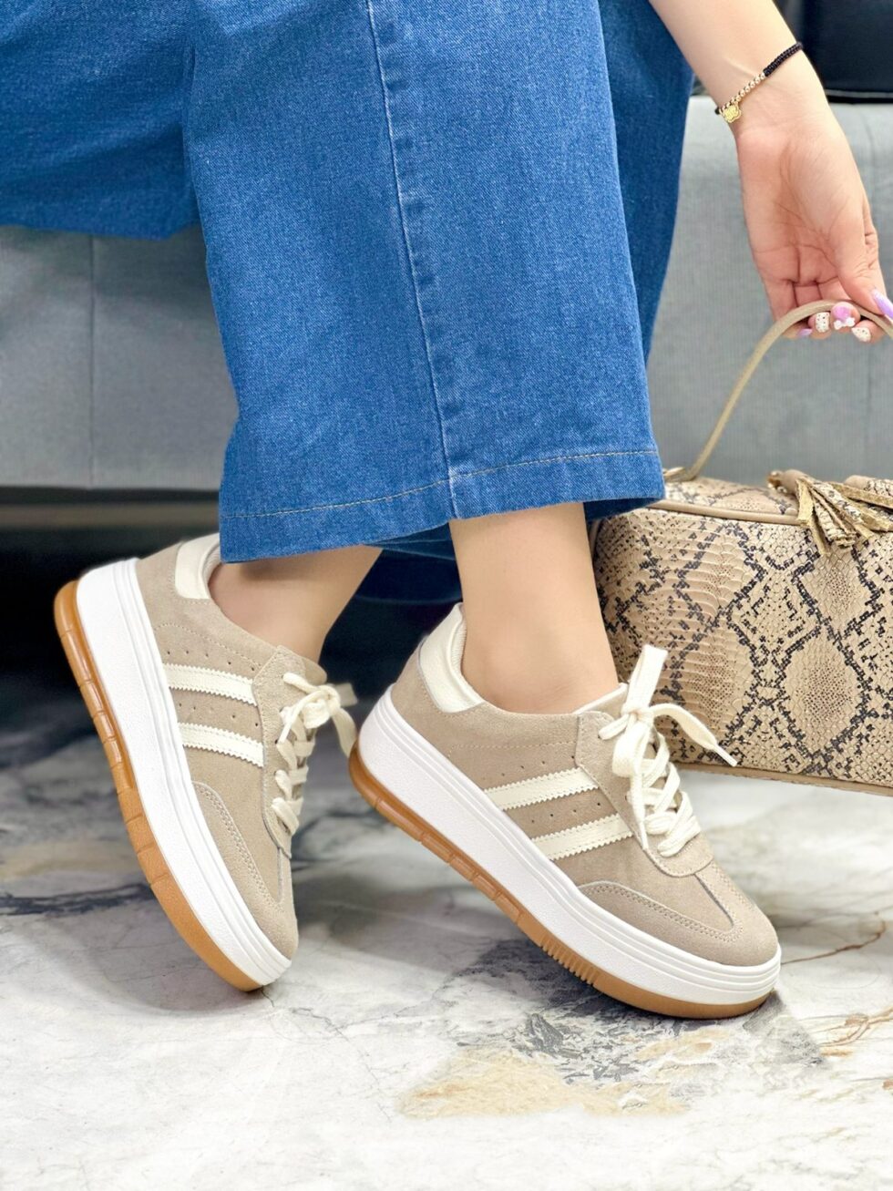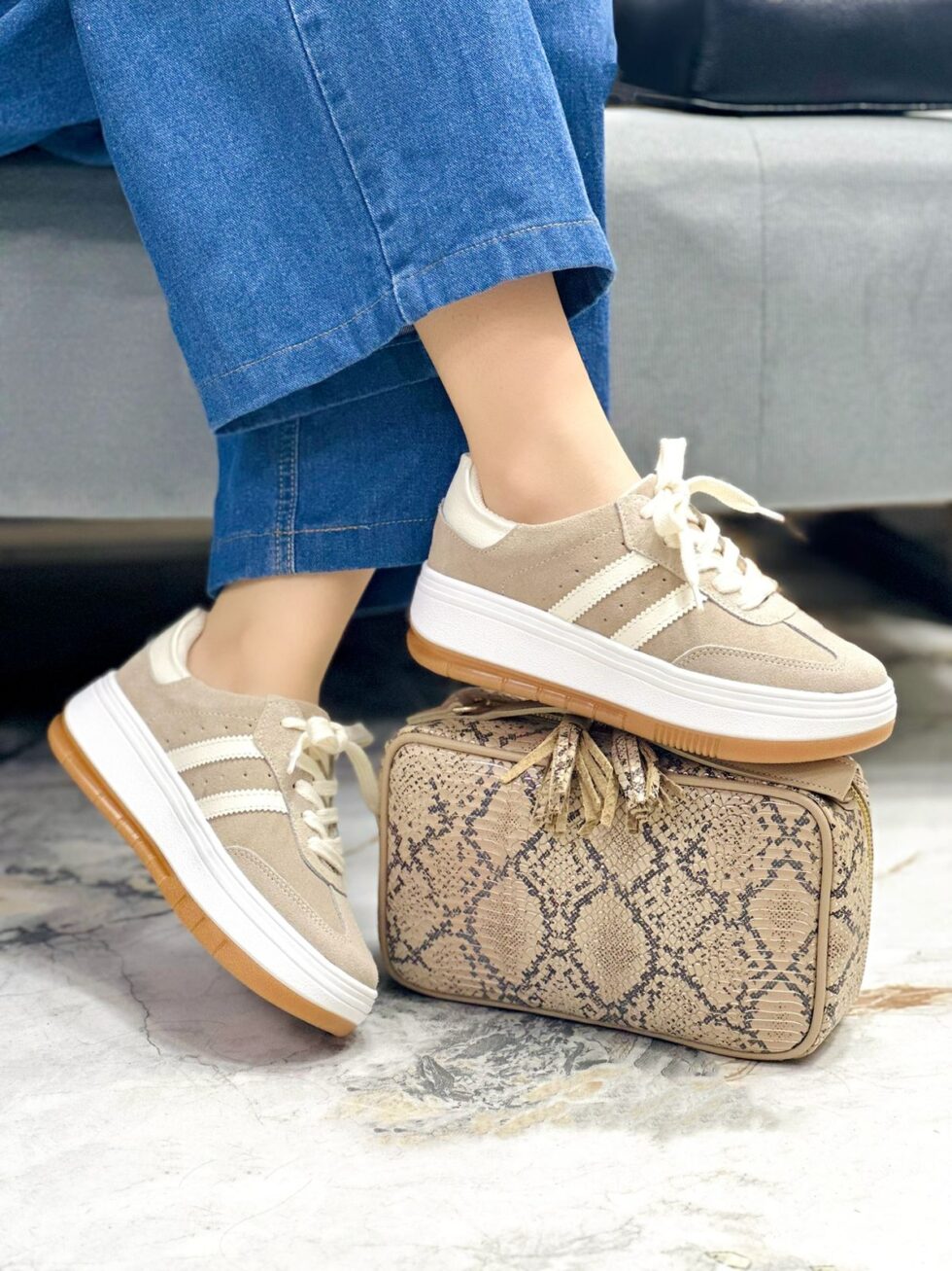Estos tenis en cuero tono Carnaza Beige destacan por su diseño fresco y moderno, realzado con detalles en Talco que aportan un toque suave y femenino. Su suela ligeramente alta no solo estiliza la figura, sino que también brinda mayor comodidad y estabilidad, haciéndolos ideales para el uso diario. Son versátiles, fáciles de combinar y perfectos para acompañarte durante todo el día con estilo y confort.