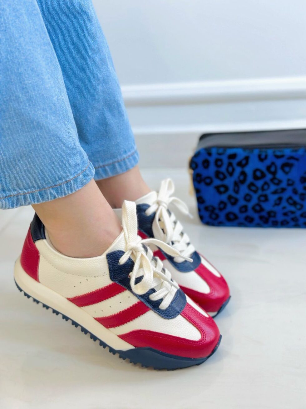 Tenis en cuero de alta calidad que combinan tonos Talco, nude, azul marino y un toque plateado, creando un diseño moderno y versátil. Su estilo deportivo se realza con detalles en cuero liso y texturizado, además de una suela dentada que ofrece excelente tracción y confort en cada paso. Con cordones para un ajuste perfecto y plantilla acolchada, son ideales para looks casuales que buscan comodidad y estilo durante todo el día.