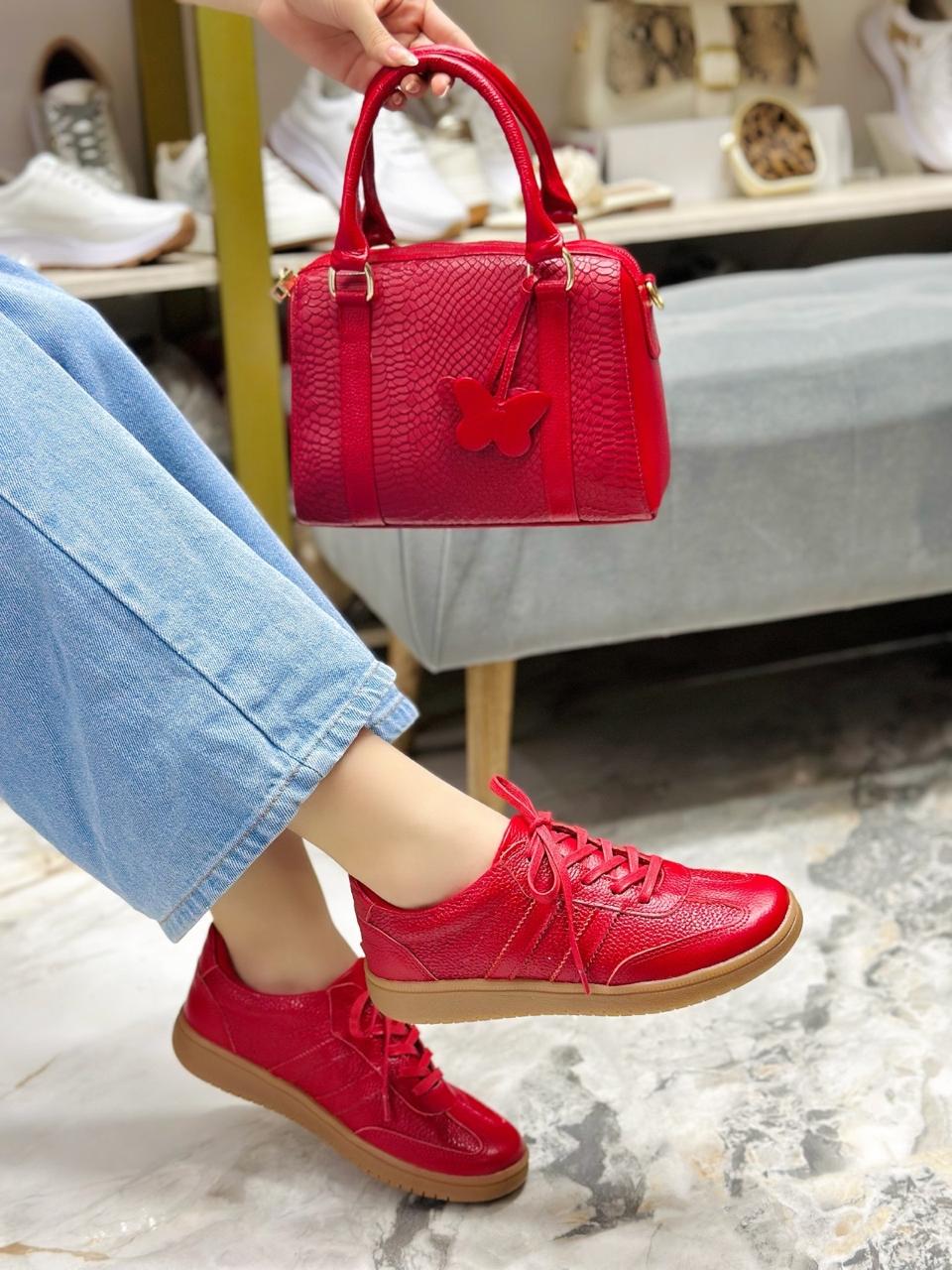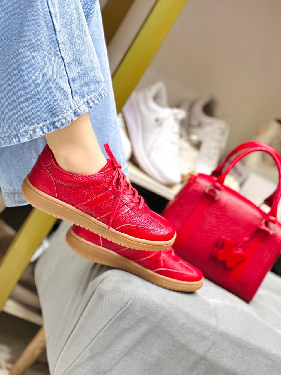 Tenis en color Rojo elaborados en cuero de alta calidad, diseñados para brindar estilo y comodidad en todo momento. Su interior forrado en suave espuma sintética ofrece una sensación acolchada que protege tus pies durante el día, mientras que su acabado metálico en tono Rojo grabado los convierte en el complemento perfecto para realzar cualquier outfit. Versátiles, modernos y duraderos, estos tenis son ideales para quienes buscan un calzado elegante y cómodo para toda ocasión