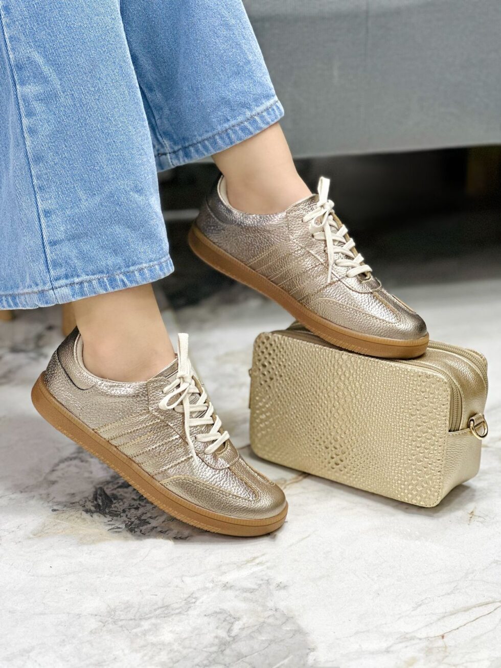 Estos tenis en cuero color Luna son el equilibrio perfecto entre estilo y comodidad. Su diseño clásico destaca por la suela bajita en tono café, que les aporta un toque moderno y versátil, ideal para combinar con cualquier look. Fabricados en cuero de alta calidad, garantizan durabilidad y un calce cómodo para uso diario. Perfectos para quienes buscan un estilo casual, elegante y atemporal.