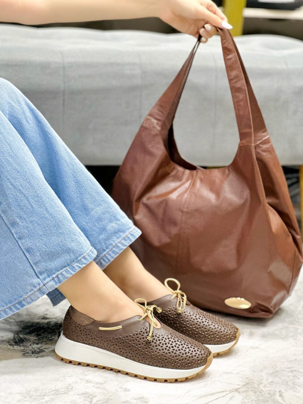 Presentamos nuestros frescos tenis en un encantador color Chocolate, perfectos para añadir un toque de vitalidad a tu guardarropa. Con un sutil toque dorado, estos tenis destacan por su elegante contraste, aportando un aire moderno y sofisticado. Su diseño sin cordones ofrece comodidad y facilidad de uso, permitiéndote calzarlos rápidamente mientras te mantienes a la moda. Ideales para un día casual o para darle un giro chic a tu look, estos tenis son la opción perfecta para quienes buscan estilo y comodidad en cada paso.