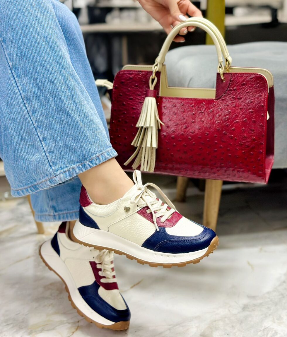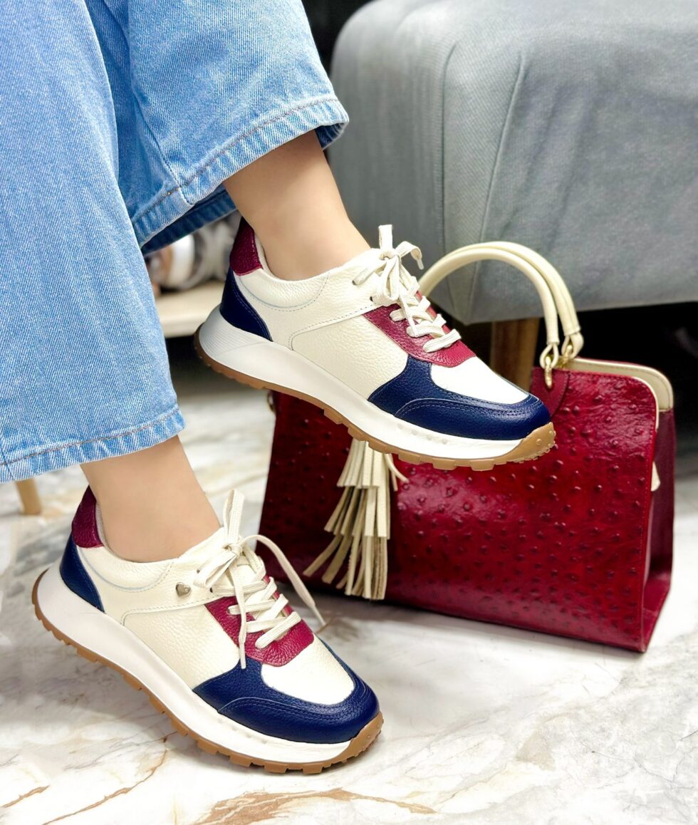 Estos tenis en cuero color talco destacan por su combinación única de piezas en azul y vinotinto, que aportan un contraste elegante y lleno de estilo. Están elaborados en cuero de excelente calidad, lo que garantiza resistencia, suavidad y una apariencia sofisticada. Su diseño moderno se adapta fácilmente a diferentes estilos, desde un look casual hasta uno más urbano. Además, cuentan con una suela liviana que brinda una sensación de confort en cada paso, permitiendo caminar durante horas sin perder comodidad. Son el equilibrio perfecto entre moda, calidad y practicidad, ideales para quienes buscan calzado con personalidad y distinción.