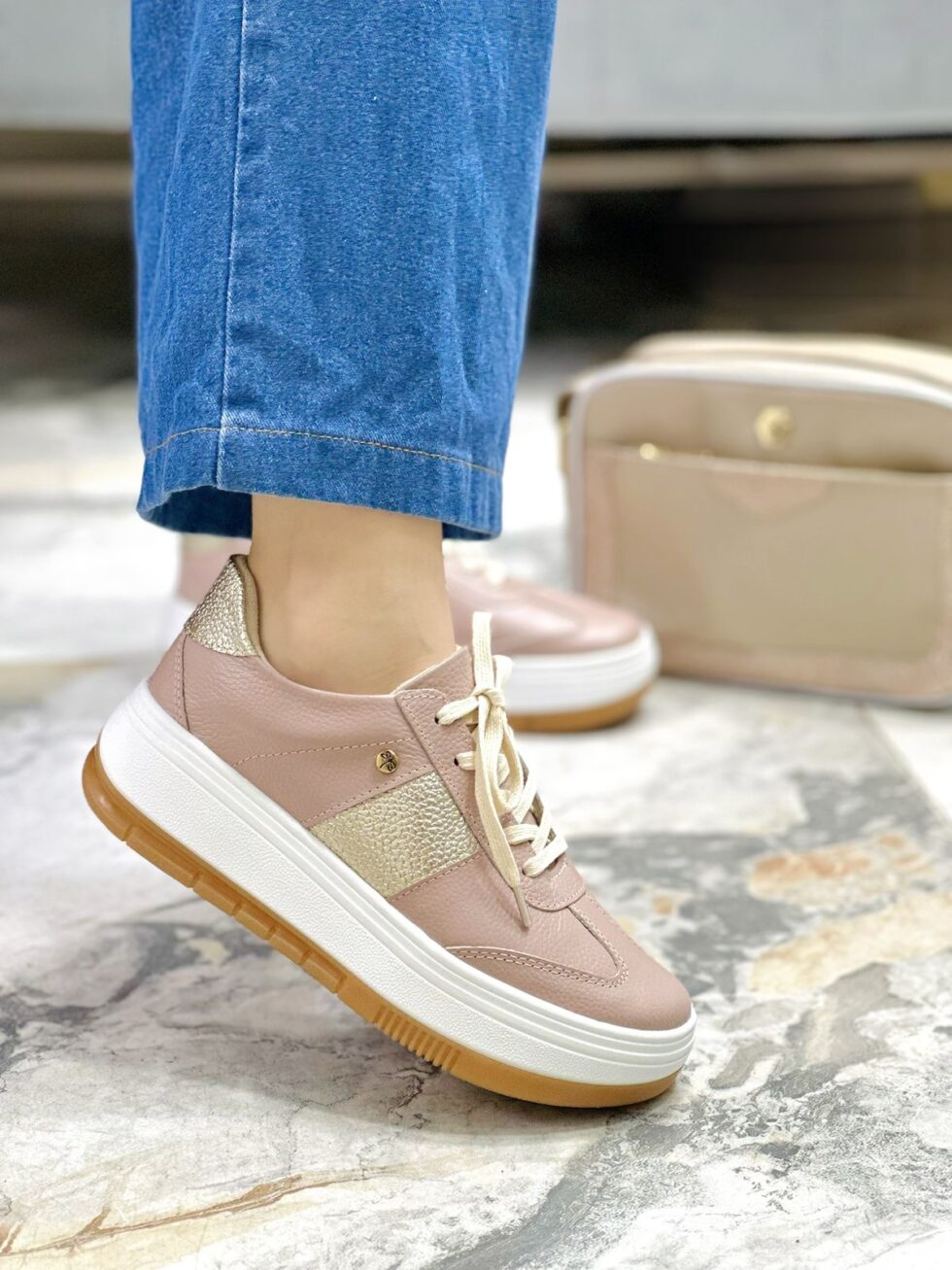 Sus piezas en color dorado aportan un toque sofisticado y moderno que eleva cualquier outfit, mientras que los cordones en tono claro crean un contraste delicado y armonioso.