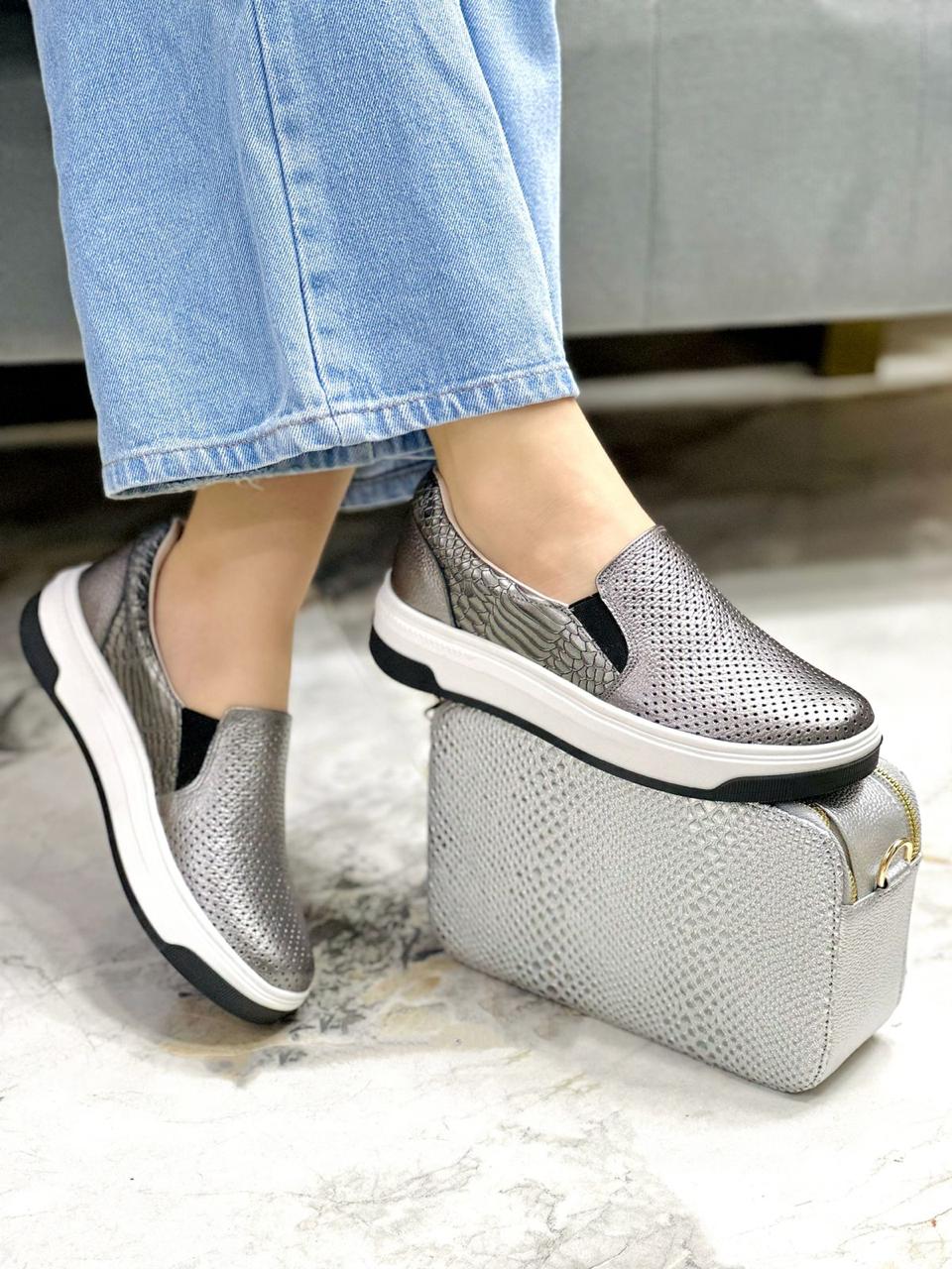 Tenis en color Caño Fusil , diseñados sin cordones para facilitar su postura y ofrecer máxima practicidad. Cuentan con pequeños resortes a ambos lados que permiten un ajuste cómodo y seguro al pie. Están elaborados en cuero de alta calidad, y en su interior incorporan un suave abullonado que proporciona una sensación de confort superior, ideal para el uso diario con estilo y comodidad.