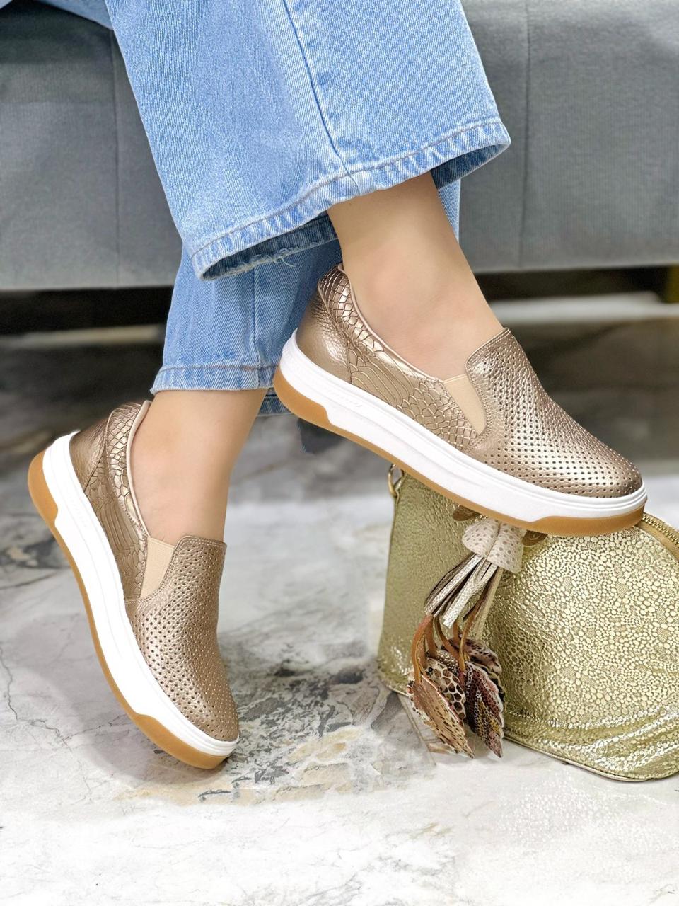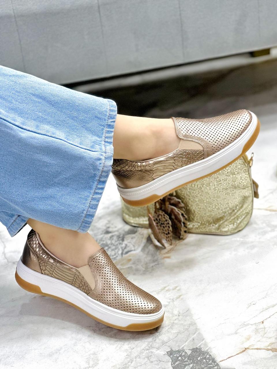 Tenis en color Luna , diseñados sin cordones para facilitar su postura y ofrecer máxima practicidad. Cuentan con pequeños resortes a ambos lados que permiten un ajuste cómodo y seguro al pie. Están elaborados en cuero de alta calidad, y en su interior incorporan un suave abullonado que proporciona una sensación de confort superior, ideal para el uso diario con estilo y comodidad.