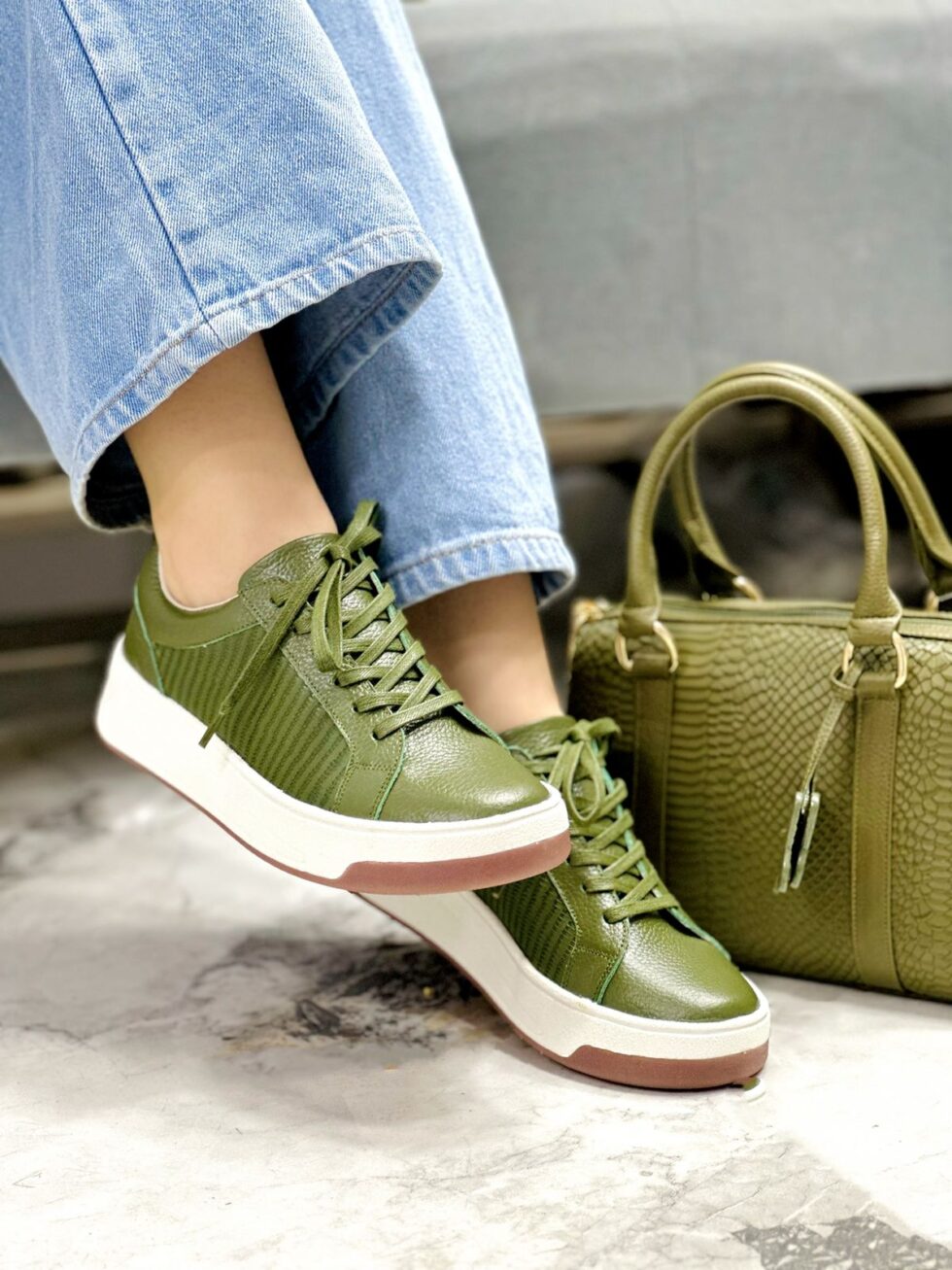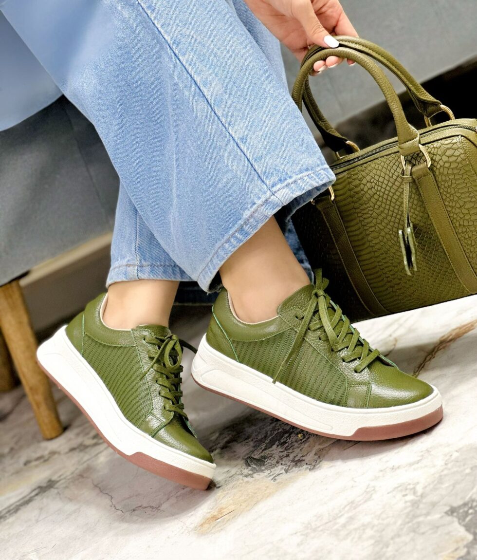 Estos tenis 100% en cuero en un sofisticado color Verde militar son la combinación perfecta entre estilo y funcionalidad. Su tono neutro los convierte en una opción versátil y elegante para cualquier ocasión, adaptándose fácilmente a diferentes estilos y outfits. Lo que realmente los hace únicos es el detalle en el grabado del cuero, un elemento distintivo que aporta exclusividad y un toque de originalidad. Además, cuentan con una plantilla confort en su interior que proporciona una experiencia de uso superior, garantizando comodidad durante todo el día. Estos tenis son la elección perfecta para quienes buscan diseño, calidad y comodidad en un solo producto.